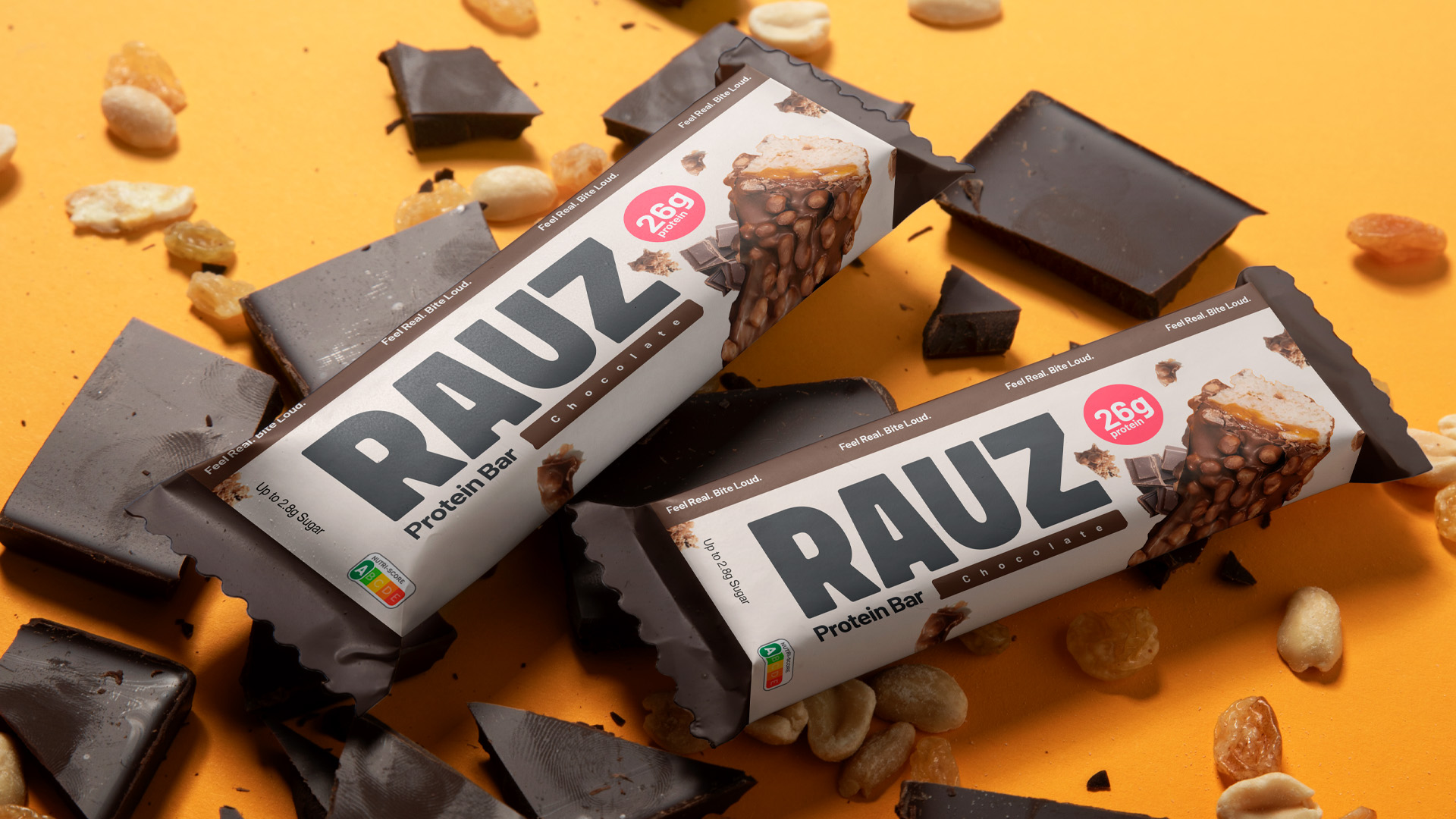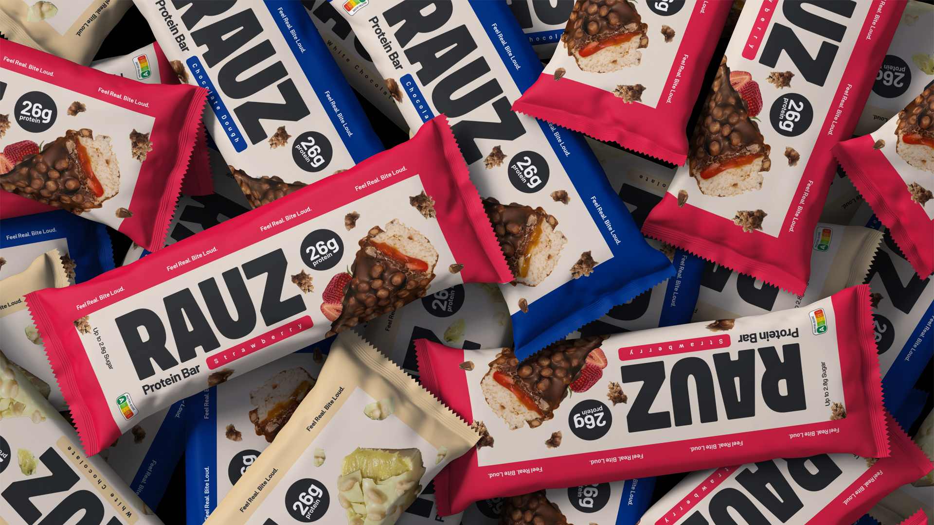 RAUZ için oluşturulan marka kimliği, protein bar ve fonksiyonel atıştırmalık kategorisinde güçlü, net ve iddialı bir konumlandırma üzerine inşa edildi. Ürünün lezzet odaklı yaklaşımı, aktif yaşam stiline hitap eden enerjik bir marka diliyle birleştirildi. İsimlendirme, görsel kimlik, tipografi ve iletişim tonu; raflarda ayırt edici, dijitalde ise yüksek hatırlanırlık sağlayacak şekilde tutarlı bir marka sistemi altında ele alındı.