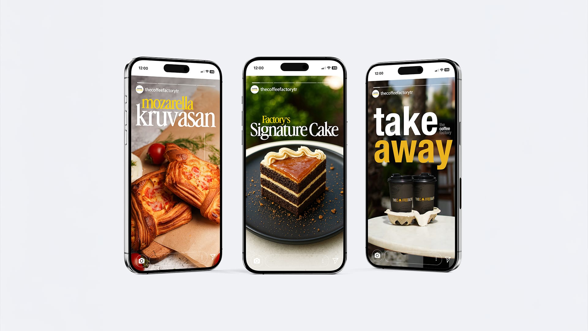 The rebranding process for The Coffee Factory aimed to bring together the brand's growing structure, chain store experience, and digital touchpoints under a stronger and more consistent brand system. Brand positioning, visual identity, and communication language were restructured to encompass both the physical store experience and digital channels. The resulting brand identity offers a holistic structure that supports The Coffee Factory's modern, dynamic, and globally competitive stance.