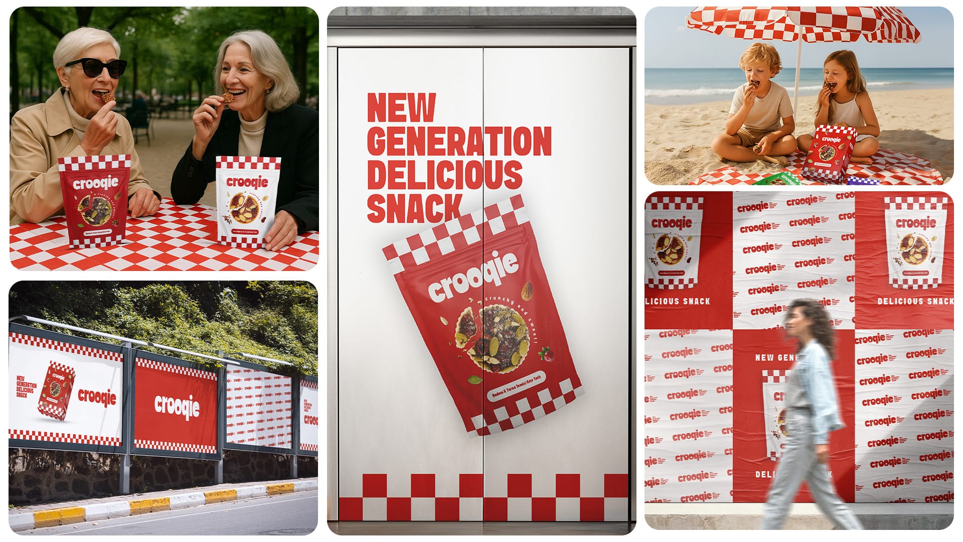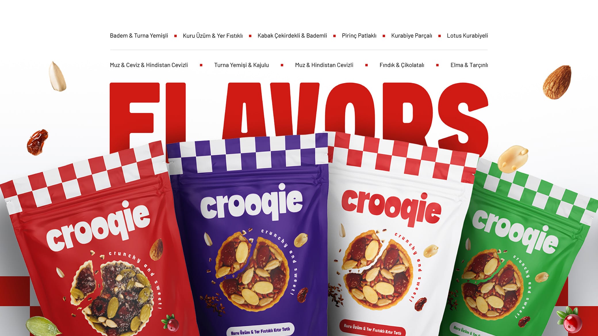 Crooqie için oluşturulan marka ve ambalaj tasarımı, yeni nesil atıştırmalık kategorisinde güçlü bir konumlandırma yaratmak amacıyla geliştirildi. Ürünün modern, dinamik ve genç hedef kitleye hitap eden lezzet vaadi; renk paleti, tipografi, logo yapısı ve ambalaj diliyle bütünleşik bir marka deneyimine dönüştürüldü. Raflarda yüksek görünürlük sağlayan grafik yaklaşım, ürünün “yeni nesil lezzet” iddiasını destekleyen güçlü bir görsel atmosfer yarattı.